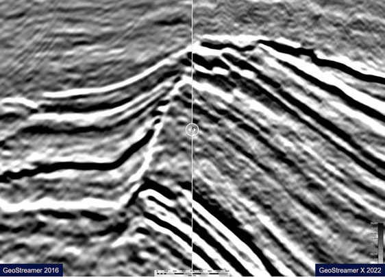 Structural definition improvement is clearly demonstrated over the Natalia discovery. Slide the bar to compare single azimuth GeoStreamer data from 2016 and GeoStreamer X final data. See how fault imaging is enhanced by additional azimuthal content and augmented signal/noise ratio. Better data allows geological interpretation to be refined.