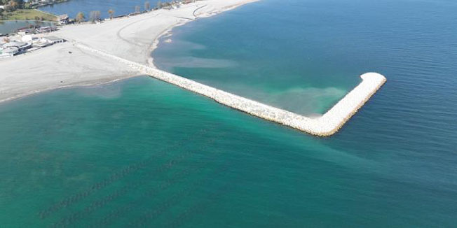To protect the beaches from storm waves, Van Oord installed breakwaters over a length of 9 kilometres. These coastal defence structures will serve to shield the coast against tides, currents, waves and storm surges. After the structures were in place, trailing suction hopper dredger Vox Amalia deposited 4 million cubic metres of sand to protect the stretch of coastline from erosion.