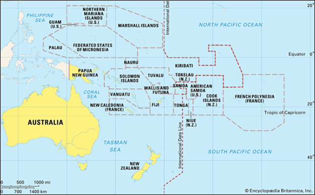 Figure 1 – Map of Oceania (Encyclopaedia Britanica, Inc)