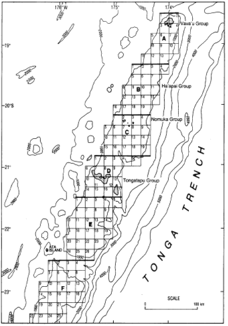Figure 8 – Original Tonga Oil Exploration Consortium Concession Outline (CCOP-SOPAC, 1975)