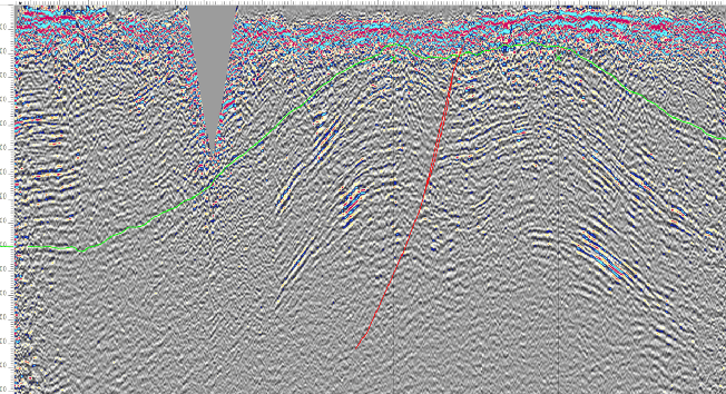 Figure 2: – Southwest to Northeast Seismic line showing the anticlinal expression developed in the Bokor North valley bottom and flanking hills.