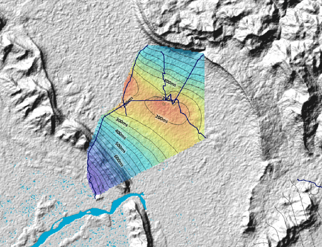 Figure 1 – Interpolated structure of the North Bokor anticline from our 2D seismic program