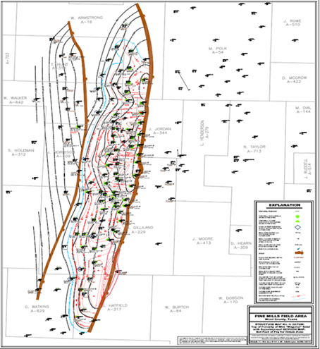 Pine Mills is a 2,400-acre producing oil field in Wood County, Texas. All leases are ‘Held by Production’, allowing for complete control over the timing of any future capital expenditure decisions. The Company has a 100% working interest and is the operator. The field was acquired in November of 2016.