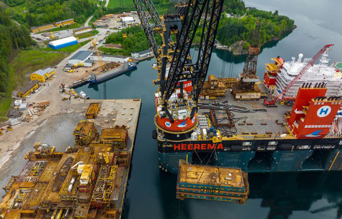 Illustration photo of platform structures being offloaded from HMC’s vessel Sleipnir at AF Environmental Base Vats