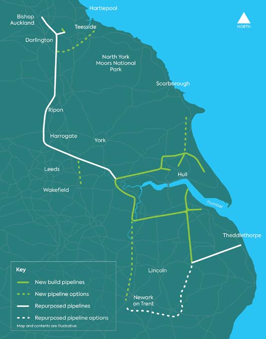Running from Teesside, through Yorkshire and the Humber, and south into the East Midlands, the pipeline will form the backbone of a clean-energy corridor designed to boost regional economies, protect and create jobs, and enhance energy security by enabling a shift towards low-carbon energy.
