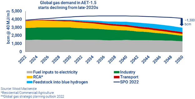 Longer term gas demand decline is unavoidable in a 1.5 degree pathway. And the market could become more competitive and dynamic as green commodities for decarbonisation, such as hydrogen and ammonia, enter the market in big way.