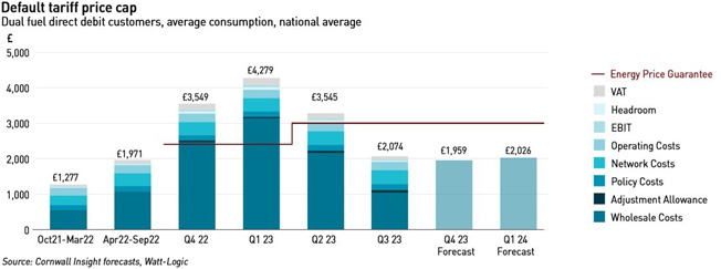 The reduction in the price cap is overwhelmingly due to the reduction in wholesale costs which have fallen significantly since mid-December. The price observation period for the new cap period beginning on 1 July was mid-February to mid-May during which time prices fell by around 45%. Cornwall Insight is forecasting that the cap will remain broadly at the current level for the next two quarters.