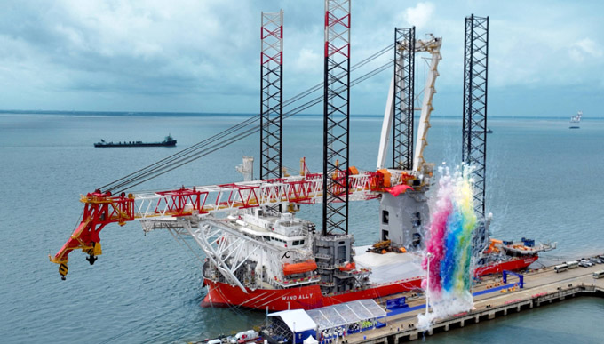 Wind Ally was officially named at a naming ceremony on the 24 September. The ceremony was attended by senior leaders and crew representatives from Cadeler, alongside partners and key stakeholders, celebrating the naming and successful construction of the company’s first A-class vessel. Earlier today, the vessel was officially delivered to Cadeler, marking a significant milestone in the company’s fleet expansion.