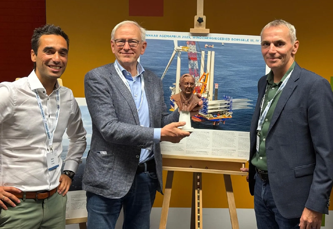 Van Oord has been awarded the prestigious Jan Agema Award 2025 for its contribution to the offshore wind project Borssele III, IV and V. The jury praised the project for its technical innovation, societal relevance, and future-proof design, highlighting it as a powerful response to the urgent energy transition in the North Sea. The award was presented last week at the Waterbouwdag in the Jaarbeurs Utrecht by jury members Professor Bas Jonkman (TU Delft) and Wilma Klaren-Agema, daughter of Professor Jan Agema.