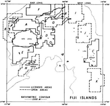 Figure 4 – Fiji Block Outlines 1973 (Durkee, AAPG Bulletin, 1973)