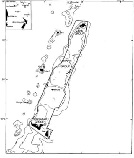 Figure 8 – Original Tonga Oil Exploration Consortium Concession Outline (CCOP-SOPAC, 1975)