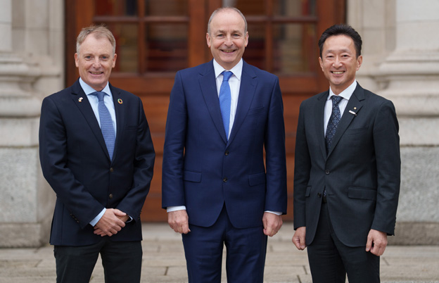 Hugh Kelly CEO Simply Blue Group, An Taoiseach Micheal Martin and Toro Kuwahara, Executive Vice President and the General Manager of the International Business and Cooperation Division at The Kansai Electric Power Co.
