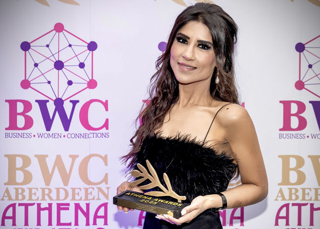 Attending the 2025 Athena Awards in Aberdeen (Friday, 14th November), IntrospeXion founder Shabnum Hanif was crowned winner of the Health, Wellbeing & Lifestyle category. Hosted by BWC Aberdeen, the award recognises outstanding contributions to the wellbeing of organisations and individuals across the region, highlighting innovation, compassion, and meaningful impact in the field of psychological health.
