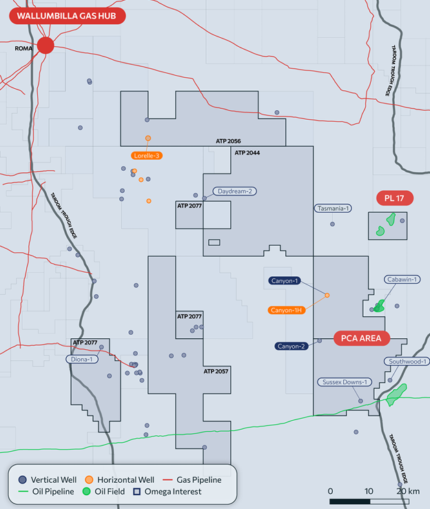 - Omega’s key focus and value driver remains our 100% owned Canyon Project in the prospective, oil and gas-bearing eastern Taroom Trough