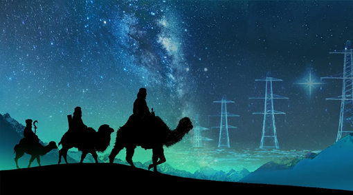 And pylons on the low sky,