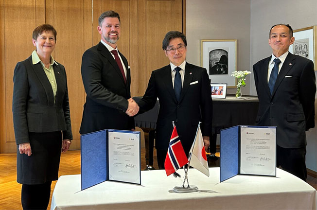 Signing Ceremony at Norwegian Embassy in Japan (Left to Right) Kristin Iglum, Ambassador of Norway to Japan,