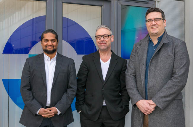 Pictured, from left, are Sankesh Sundareshwar (Chief Commercial Officer, Voltquant), Jason Brown (CEO, Elementz) and Richard McGowan (Managing Director, Fathom)