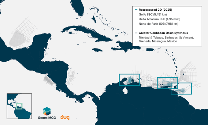 “Venezuela is entering a phase of unique commercial opportunity, and Geoex MCG is already on the ground with the seismic insight explorers will need for early evaluation,” said Robert Sorley, President Geoex MCG LLC. “Underpinned by our access to the vintage offshore Venezuelan seismic library, the development of the U.S. licensing framework, and partnership with DUG Technology to reprocess to whole offshore, we’re proud to offer this exclusive regional seismic coverage to the exploration industry.”