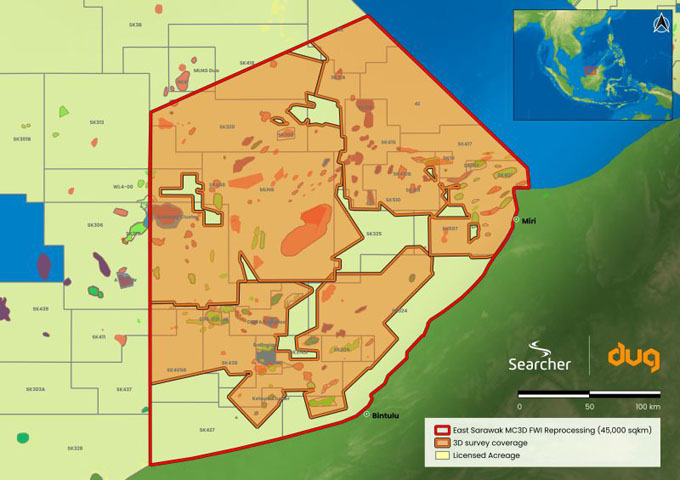 Map showing the location of DUG and Searcher’s East Sarawak multi-client seismic data reprocessing program