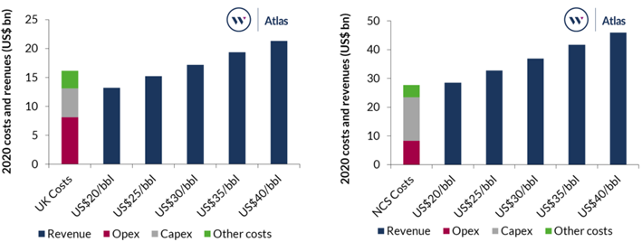 Figure 1: Cost estimates for 2020 and the predicted revenue generated at different price decks for the remainder of the year. Source: Westwood Atlas