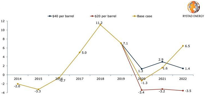 With the reality that Brent oil prices are scratching closer and closer to $20 per barrel, shut-ins are already happening around the world. Even if prices reach this threshold, the UK will avoid shut-ins and exploration is likely to continue in 2020, although cash flow and project sanctioning will suffer, a Rystad Energy impact analysis shows.